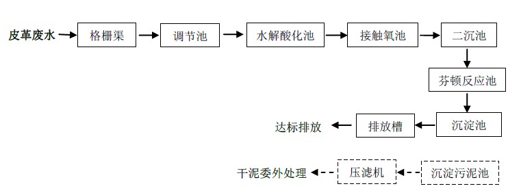 皮革生產(chǎn)過(guò)程中,大多數(shù)的水污染物是在濕加工過(guò)程(浸灰、鞣制)產(chǎn)生。皮革加工廢水中含有動(dòng)植物油脂、毛屑、肉屑、泥沙、灰渣等懸浮物和角質(zhì)蛋白、紅血蛋白等溶解性有機(jī)物,以及皮革加工過(guò)程中填價(jià)鉻、硫化物、氯化物等無(wú)機(jī)鹽類。大多數(shù)皮革廠一般采用Ca(OH)2、Na2S脫毛和鉻鞣技術(shù),此廢水因含有較高濃度的鉻鹽和硫化物等毒物,因此廢水處理工藝復(fù)雜,費(fèi)用較高。