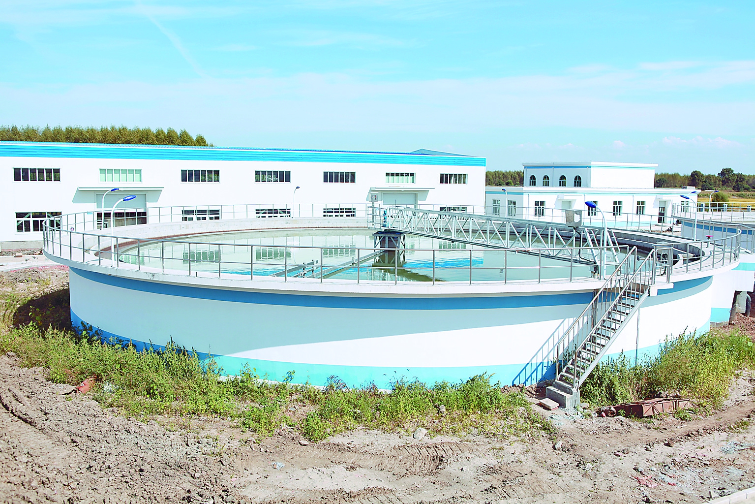 二沉池一般設置在曝氣池之后、深度處理或排放之前,其作用是泥水分離使經過生物處理的混合液澄清,同時對混合液中的污泥進行濃縮。污水經過生物處理后,必須進入二沉池進行泥水分離,澄清后的達標處理水才能排放,同時還要為生物處理設施提供經過濃縮的回流污泥或一定量的處理水。